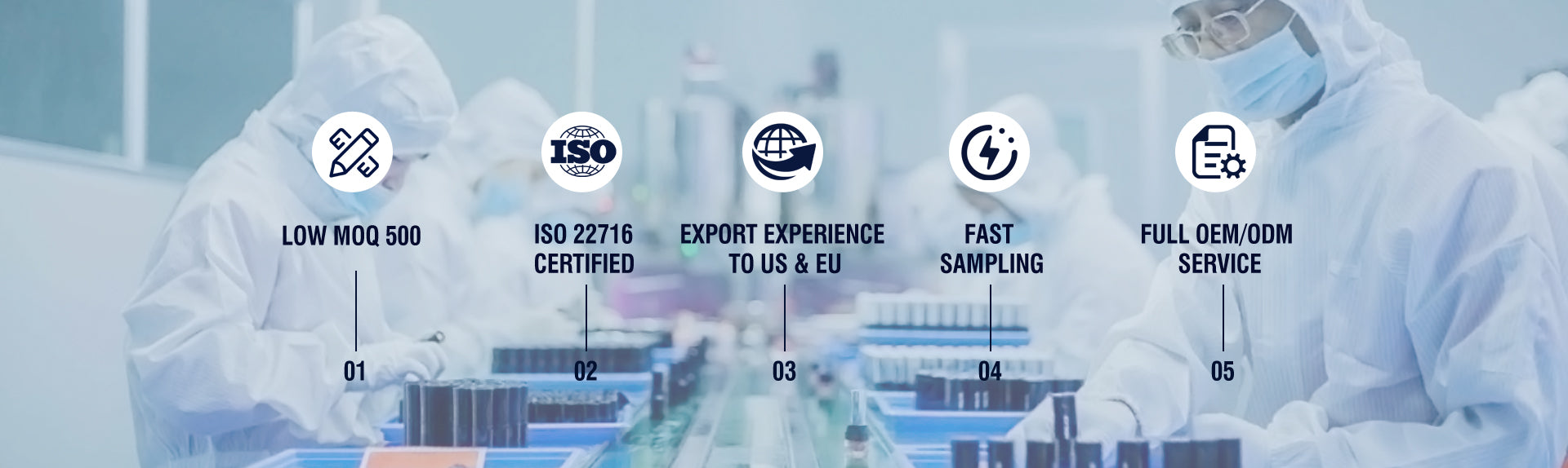 В Guangzhou Beauty Cosmetics Co.,Ltd наша приверженность совершенству проявляется во всех аспектах нашего бизнеса. Мы гордимся тем, что являемся многопрофильной организацией с обширным портфелем, включающим уход за кожей, косметику, электронную коммерцию, социальные продажи, сотрудничество с инфлюенсерами, телевизионные покупки, разработку дезинфицирующих средств и профессиональные линии. С непоколебимой преданностью инновациям и качеству мы являемся движущей силой более 200 косметических брендов, способствуя их успешному выходу как на внутренние, так и на международные рынки и получая исключительное признание.